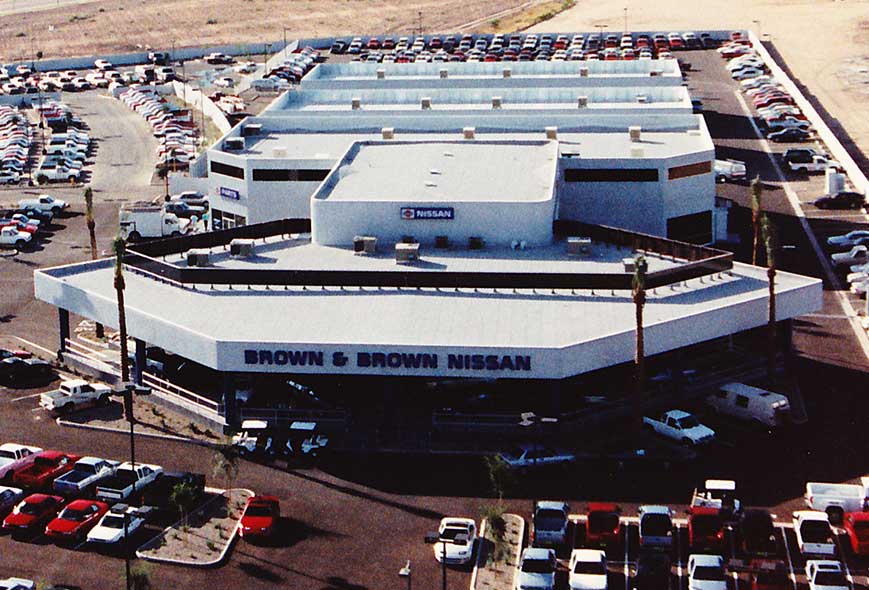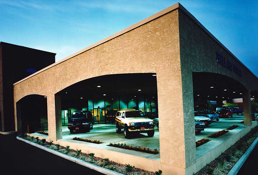 Automotive facility uses for metal buildings include showrooms, parts storage, service facilities and car rental. Steel roof structures for shade are a must in the Southwest.